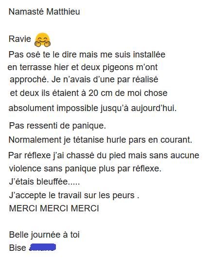 Travailler sur la libération de tes charges liées aux émotions pour ne plus être « mazouté» mais aussi sur tes phobies (animales, situationnelles, liées à l’environnement ou encore émotionnelles).