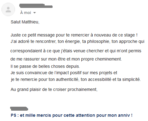 Si tu as envie de faire le travail nécessaire, dans la joie, la bonne humeur et la bienveillance, pour être mieux dans ta vie, je te propose de rejoindre mon stage pratique de 4 jours.